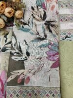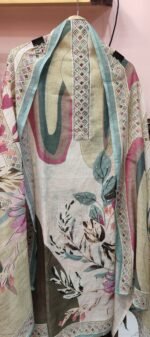 A soft, nature-inspired, artistic ethnic suit fabric perfect for casual gatherings, daytime events, or summer festivities. The balanced use of subtle prints and delicate embroidery gives it a refined yet lively appeal.