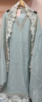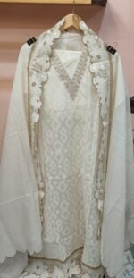A pure mul chanderi unstitched suit with self design perfect for any semi formal occasion