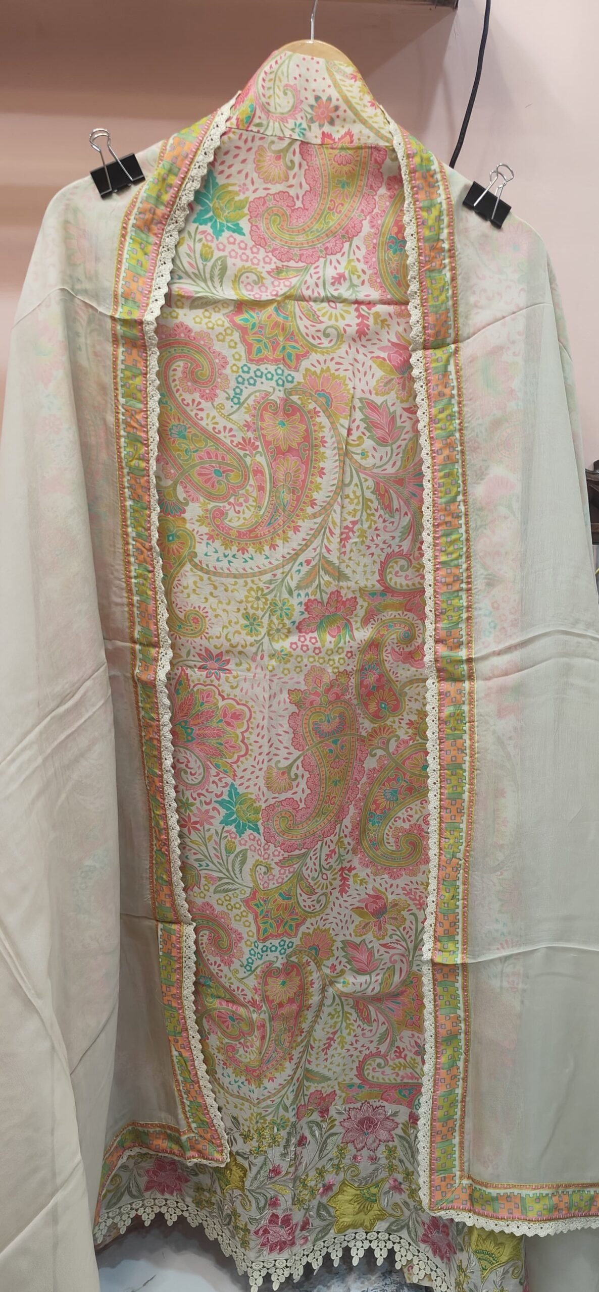 Full length dupata adorned with the fabric lace along the borders.