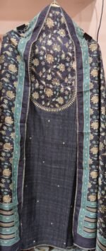 This ensemble beautifully balances muted tones with elegant detailing, making it perfect for festive gatherings, evening wear, or cultural events. The turquoise accents add a refreshing contrast to the deep base, enhancing the overall appeal.