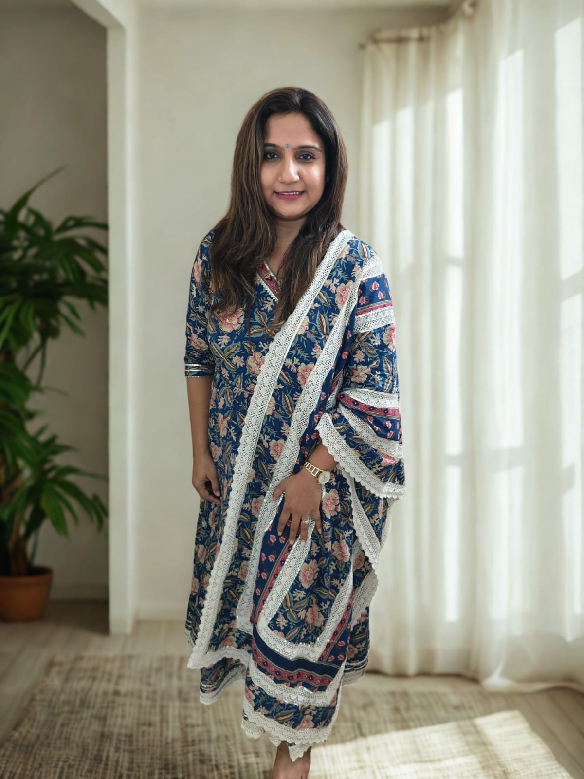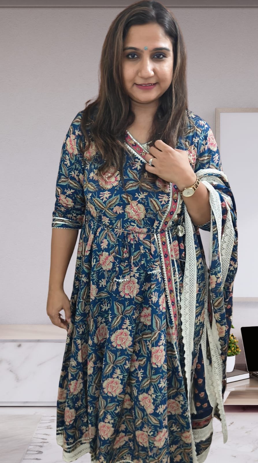 Blue floral printed Cotton Anarkali