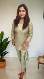This ensemble is a perfect blend of understated elegance and traditional charm, suitable for festive occasions, family gatherings, or semi-formal events.
