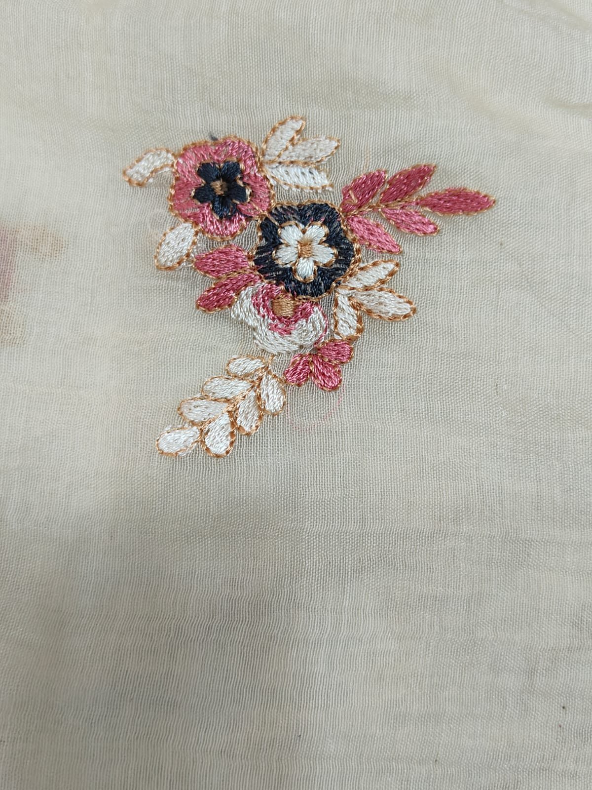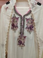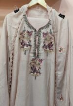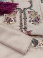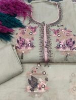 A mul chanderi unstitched suit with heavy neck work